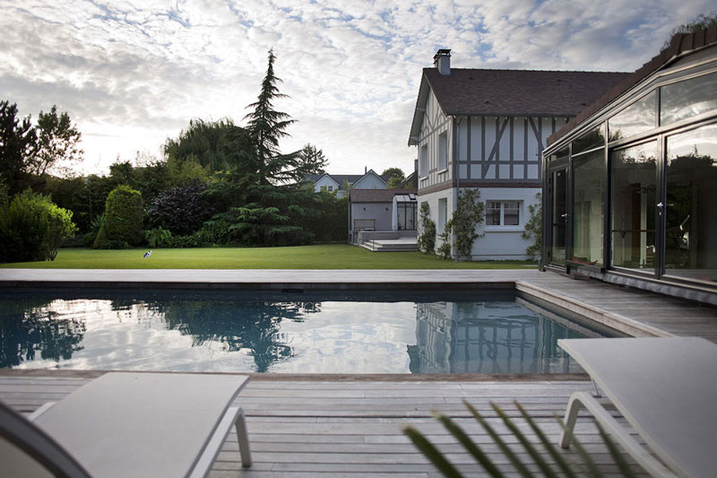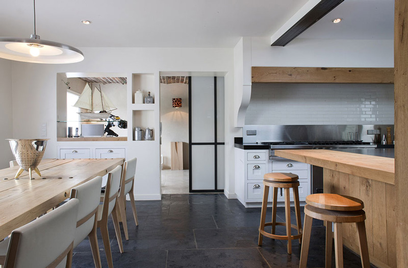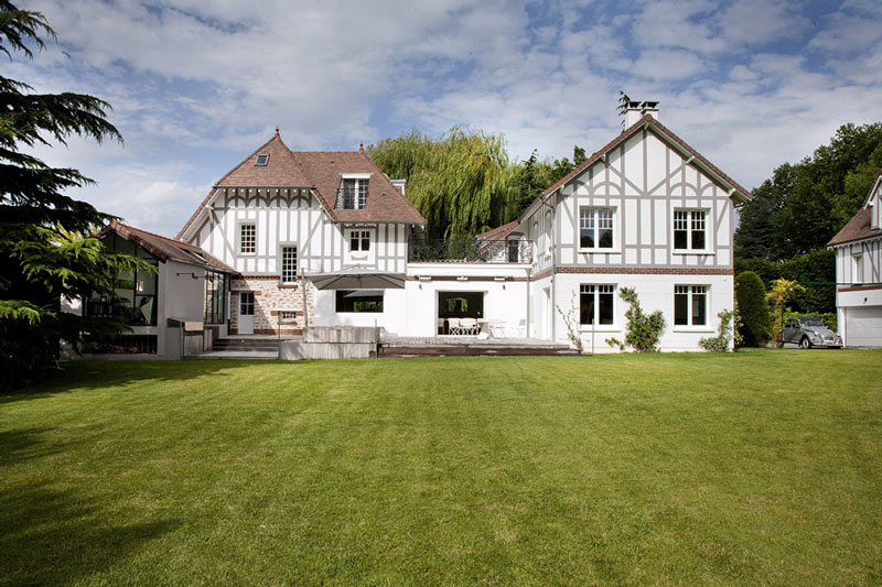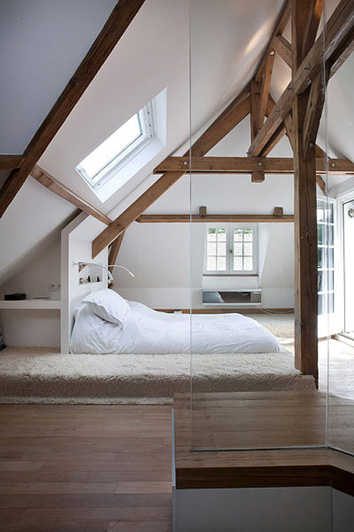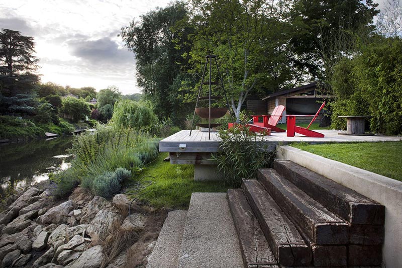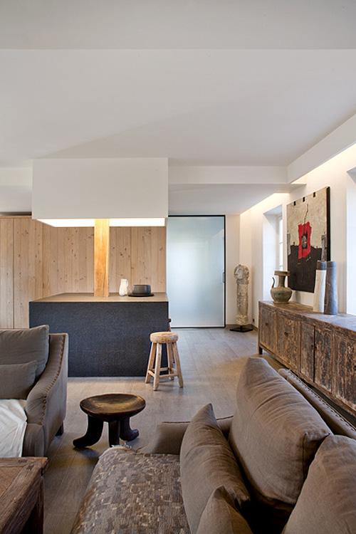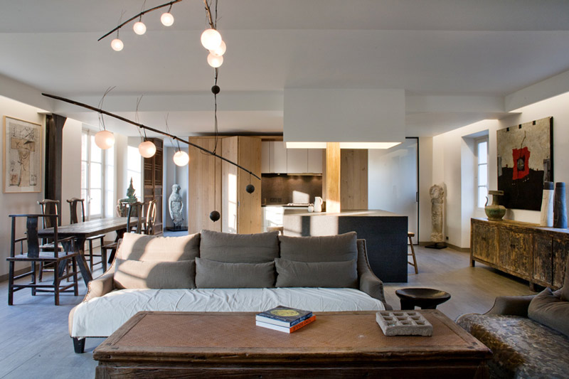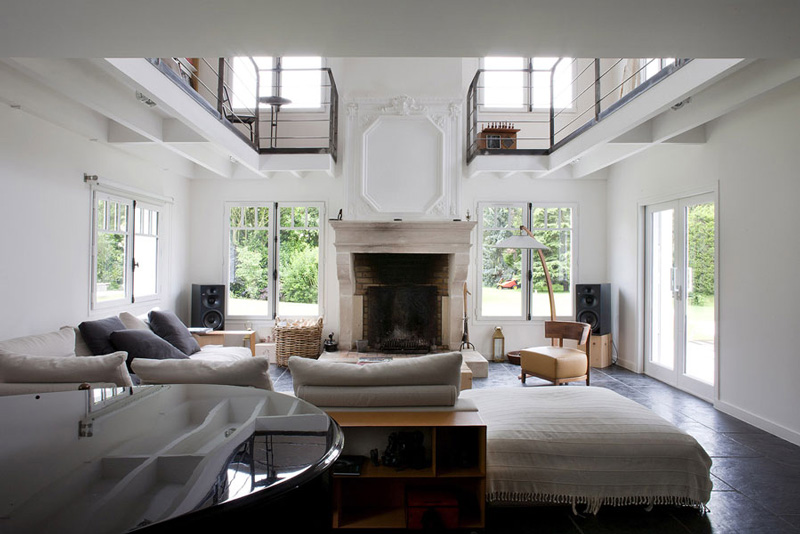 A renovation of a classic home gone modern in Villennes-sur-Seine, France (loving the deck overlooking the stream)…A bright, neutral stunner of a loft in Paris….a modern-rustic-ethnic inspired interior of a home in Molières. These striking homes were designed or architected by Parisian Olivier Chabaud.