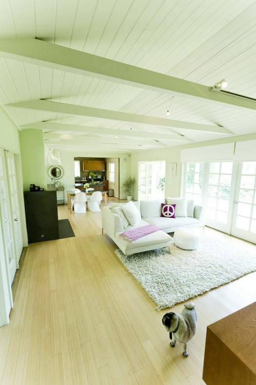 We got our hands on some photos of the home of Ross and his wife Evelyn. Ross is the founder of FleaPop – a brand-new online marketplace for once-loved goods (it’s Etsy meets Craigslist meets Pinterest). Their home is a cool little bungalow in Laurel Canyon, LA that is open-concept and bright, with a fab yard…but the best part might be their 4 legged roomie. 😉