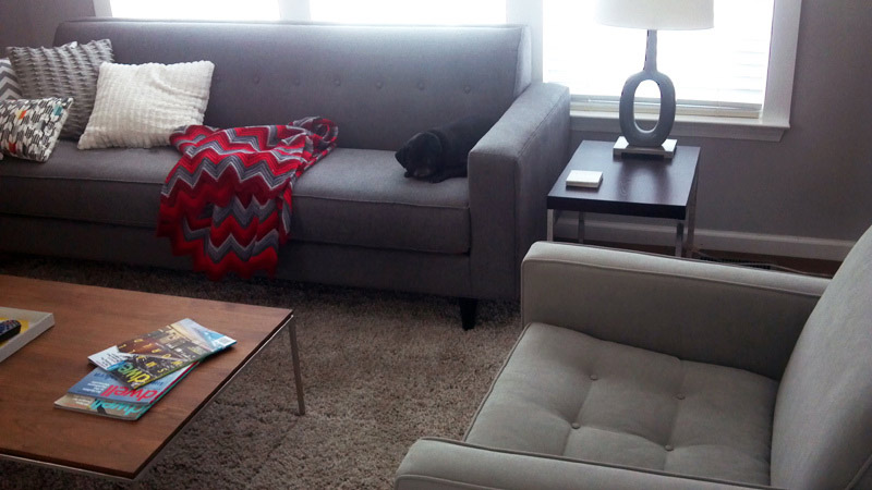 I am finally submitting a few pics of our 4 year old pug, Arya. The first picture shows her napping on our sofa from Younger Furniture (one of our favorite furniture purchases). The second picture shows her enjoying our brand new Danish chair produced by Selig. It has been one of our best second-hand finds while trying to furnish our new house.