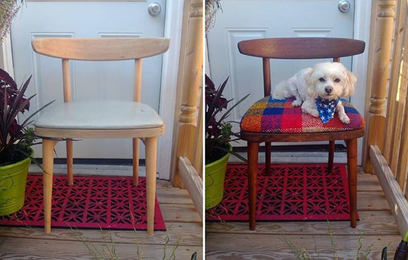 The photo with Tango was meant to document a dining chair DIY project, but it really just showcases his death stare haha.