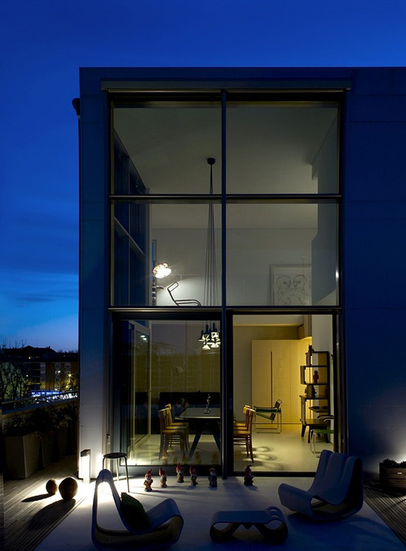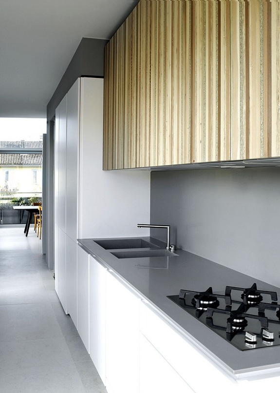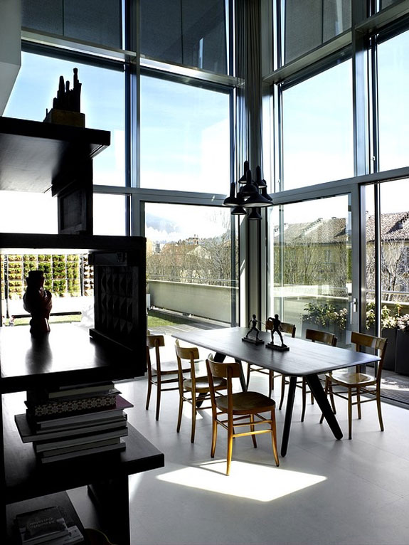 I’ve got an encore of Italian architecture and interior design firm UdA (previous project featured yesterday). It’s a penthouse in UdA’s typical modern aesthetic, with a bit of wood accents to add some warmth. Funky lighting and furnishings, a streamlined kitchen, and WOW how I love the bedroom photo! Add in a live plant wall on the massive outdoor patio and I could DEFINITIVELY live here!