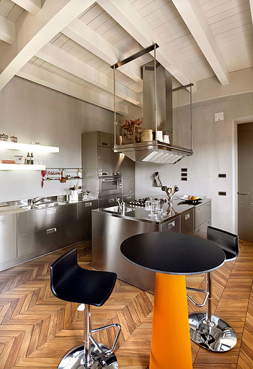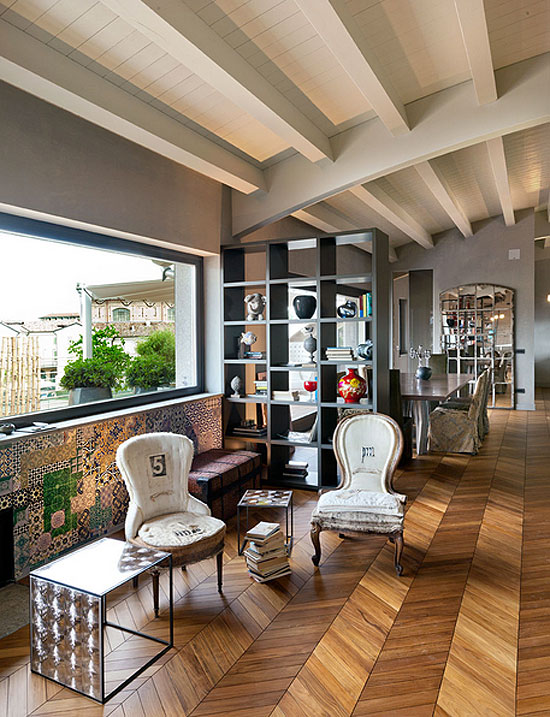 I adore wide plank hardwood so much….but then herringbone has always captivated me (seems so Parisian-apartment-like). This apartment is pretty sweet, and I love the long hallway-type layout, but OMG the hardwood floor just blows me away. And I need some antique chairs that are stripped/falling apart/left raw. Lovely! (Via Le case di Elixìr)