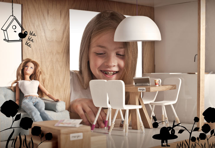 Ditch the garish bubble gum pink townhouse. You movin’ on up. Dollhouses scandi style or should I say Polish style. The perfect minimalist pad for anyone who is 1:6 scale. That’s you Barbie or you Yasmin, Cloe, Jade and Sasha or you Blythe. You too if your child is clambering for a dollhouse and you just can’t bring yourself to let anymore pink plastic into your place. Miniko by Miniio.