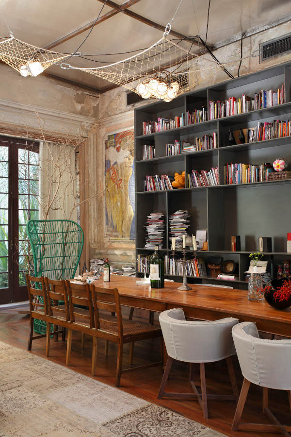 Slick, high end furnishings sit perfectly within an imperfect shell, heightening the luxe through contrast with the rough. But the old room holds firm with its faded grandeur. Is the beauty in the new or in the old or the way they interact? By Brazilian design studio Gisele Taranto Arquitetura.