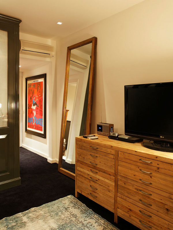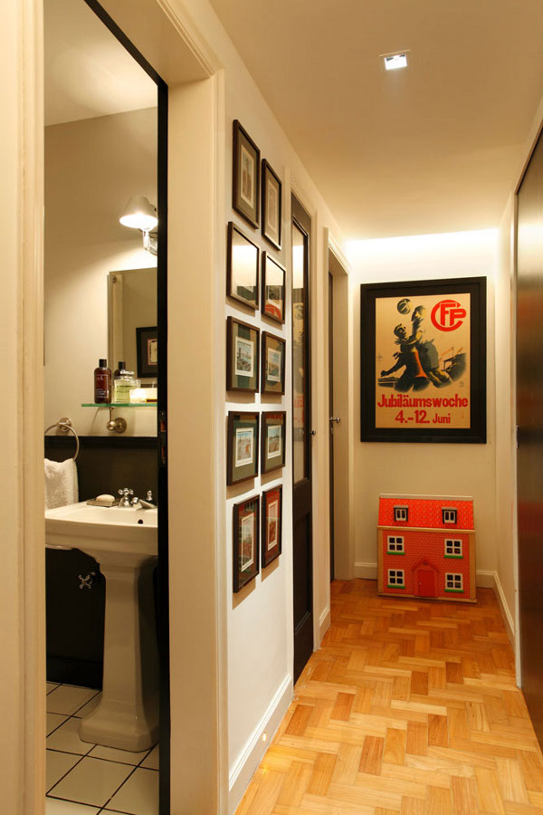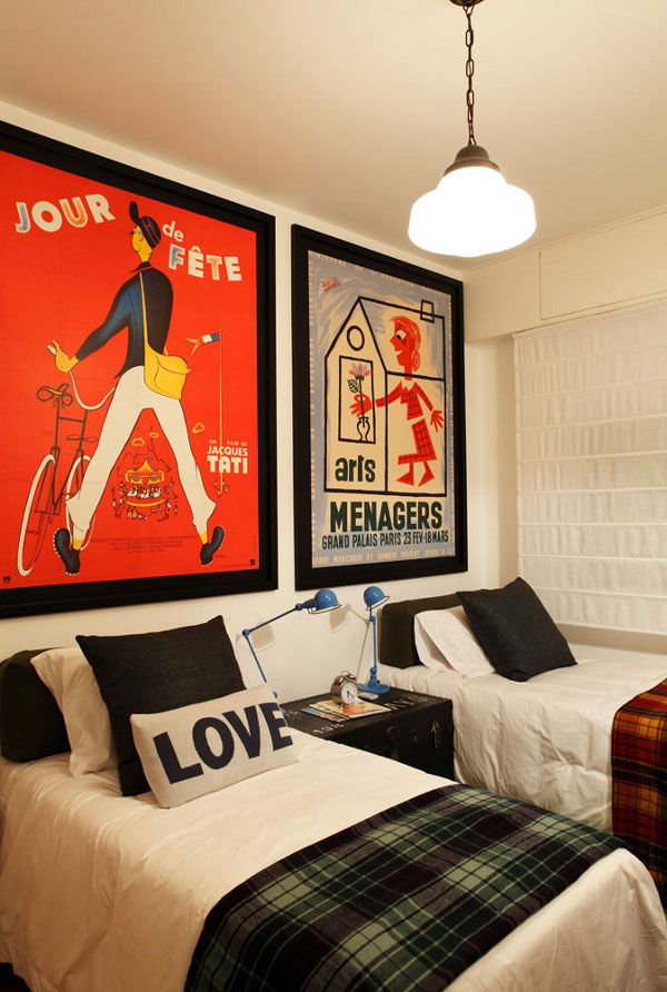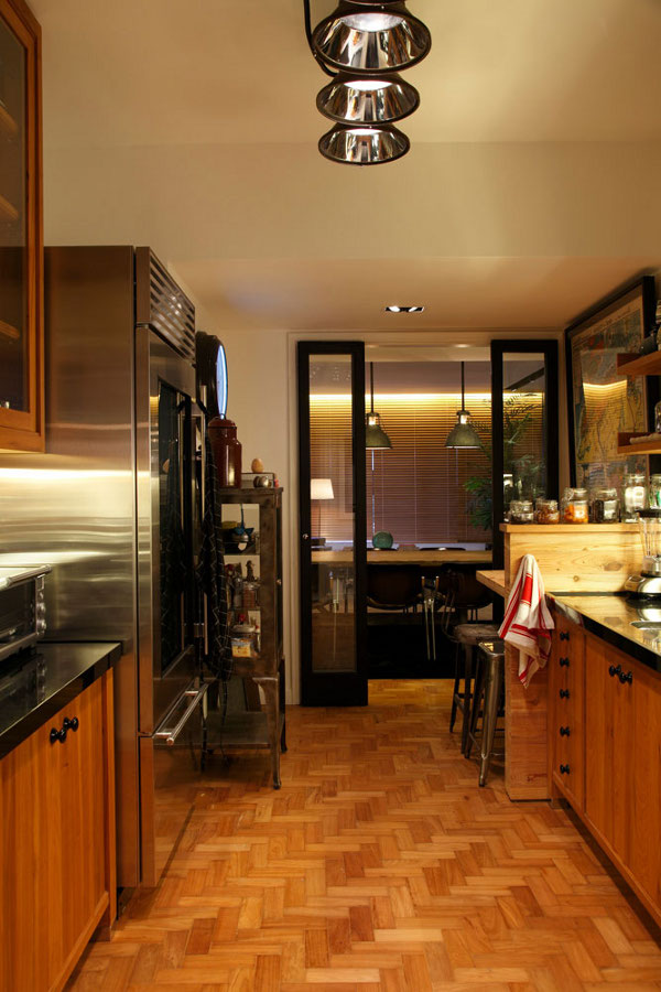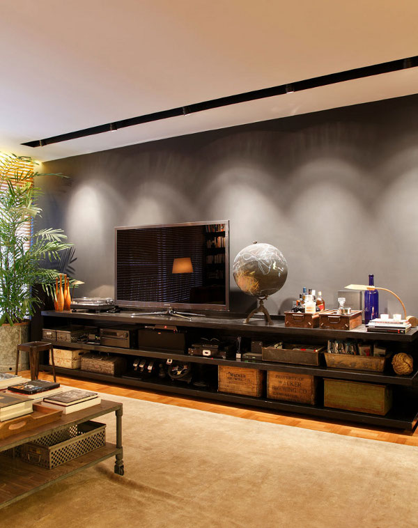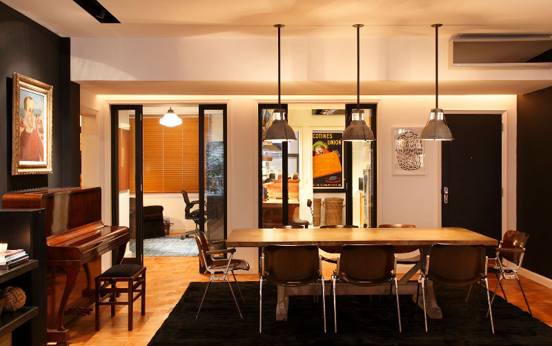 This dark and moody apartment is in Rio de Janeiro may well be the nest of that spiny creature deep within the earth but no, instead it is the creation of Brazilian architectural firm Ouriço (Portuguese for hedgehog). Outside it may be bright and sunny and tropical but inside it is calm and cocooning with graphic punches and vintage finds. Love the hero wall of books, the industrial lights and the warmth of the wood. Like a den, a club, a nest.