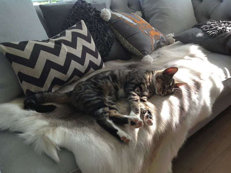 If you’d like to send me photos to include in next week’s “pets on furniture” post, please ensure your photos follow my basic rules: First, the pet must be on a piece of furniture. And said piece of furniture must be clearly visible in the photo, so it takes center stage rather than your pet. Think of it more of a photo of a great piece of furniture that you want to show off…and your pet happens to be sitting on it. And second, if the photo is dark or fuzzy then it may not make the cut. Photos, your name, location and a brief description can be sent to desiretoinspirekim@hotmail.comand PLEASE don’t send closeups of your pet! Thanks!