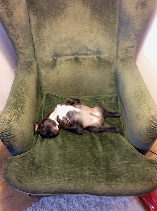 this is Egon. he’s a french bulldog puppy and is 12 weeks old. he sleeps most of the day!