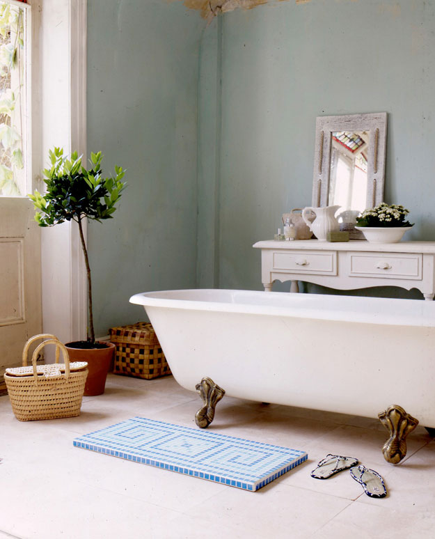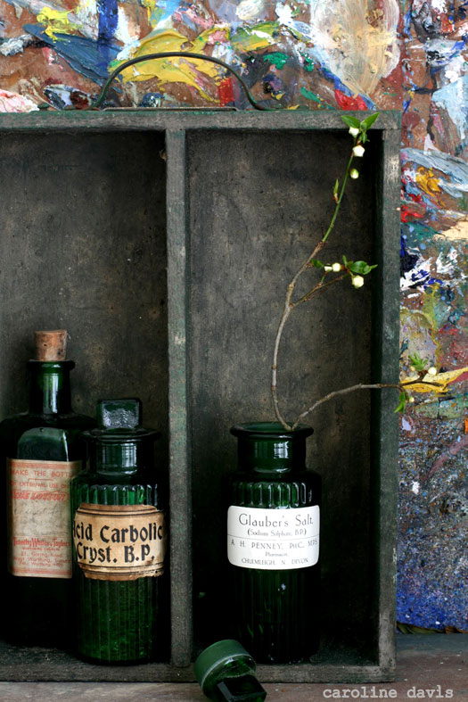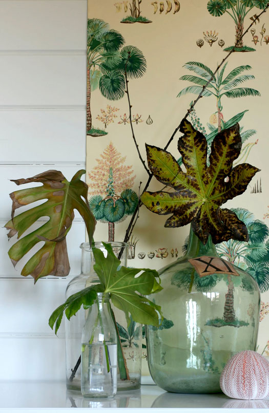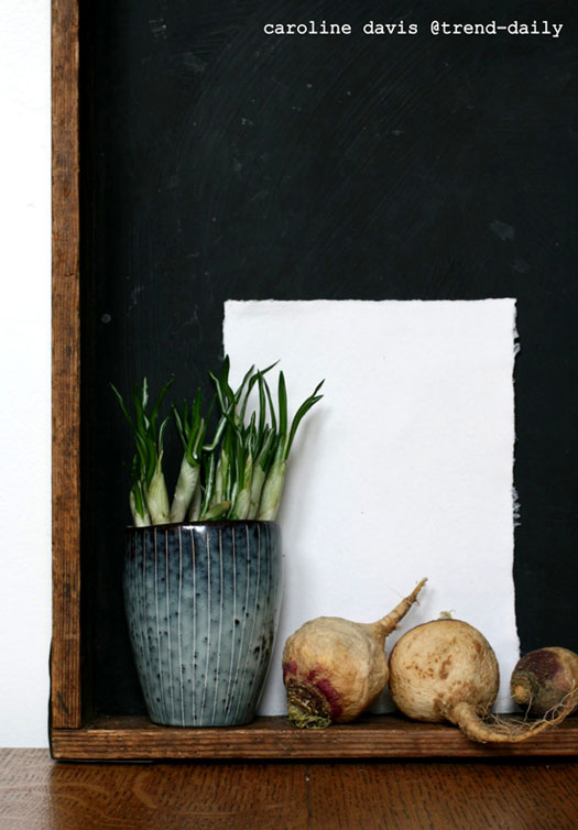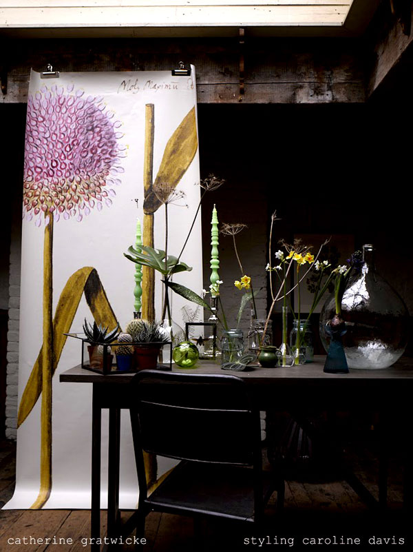 Caroline Davis lives in the U.K. and is a mom with 2 kids and 6 pets who happens to be a fantastic interior stylist (one of the coolest jobs on the planet, IMHO). She is passionate about design and colour, with a true love of all things eclectic, from vintage and modern to mid-century. This passion and love are evident in her work. I love the photo above – what a cute idea to draw the flowers that should be.
