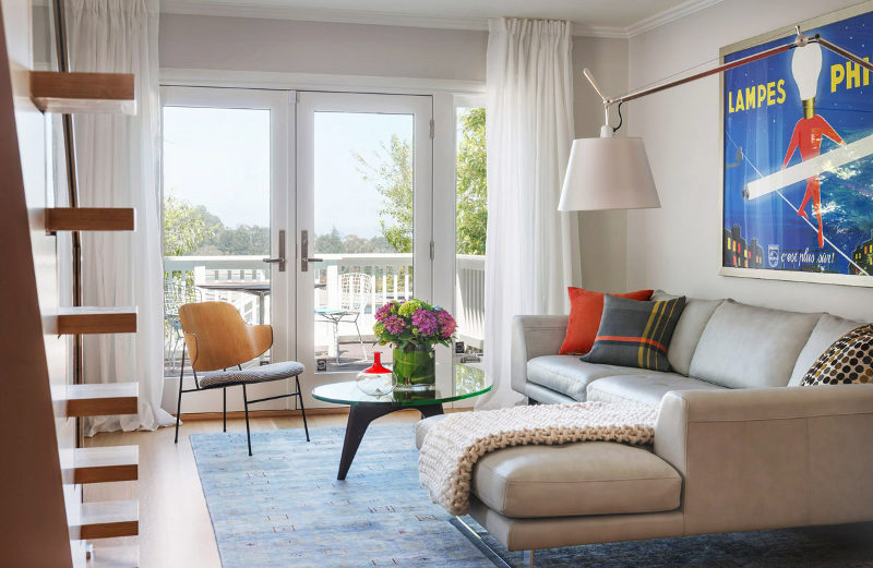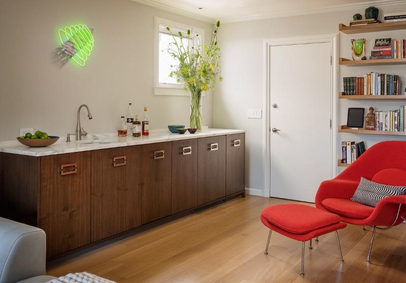 I almost missed the cat hopping through the little wall opening. Very cool! Loved the entire space (nice rugs and window treatments).