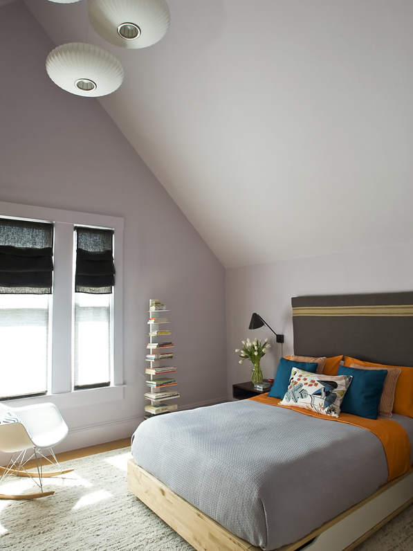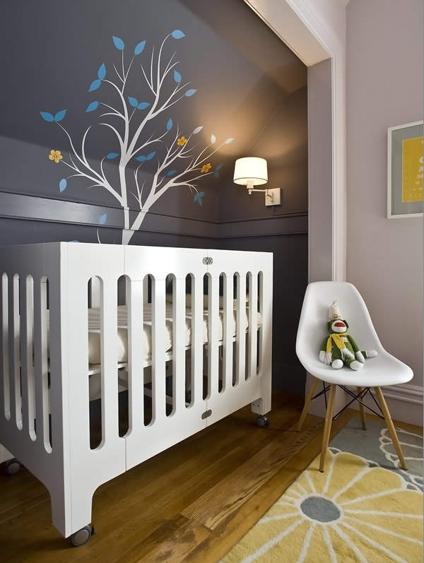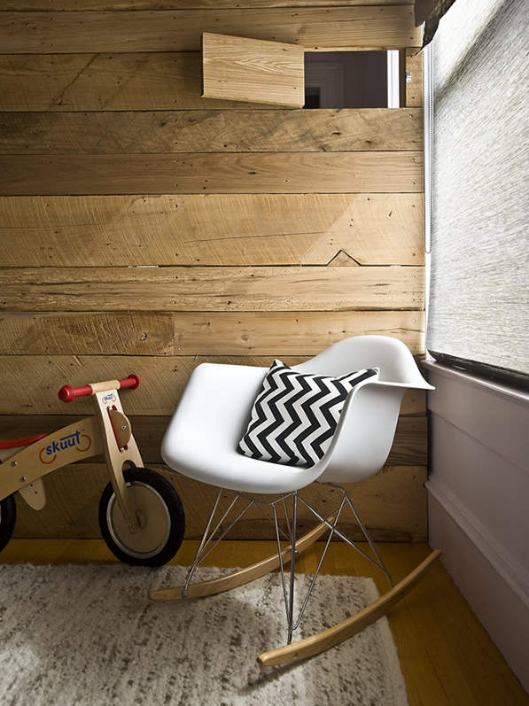 I am in love with those kids rooms they are soo cute and practical without locking the room into an age bracket, the timber wall will look as cool with dvds and photo frames when the kids get older 🙂 very cool idea!