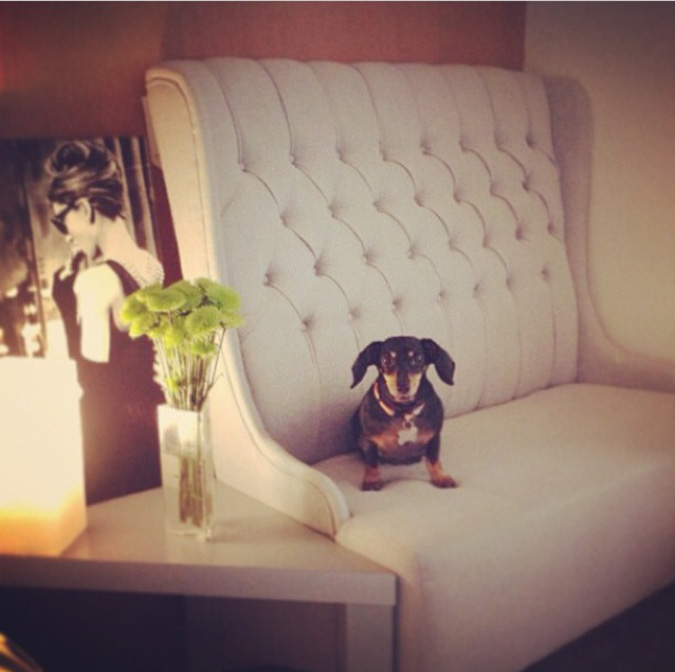 This is Mia, my 13 year old doxie that I rescued four years ago, posing on my favorite tufted chair. This was her first time on the chair since she usually can’t reach it due to her short legs. Surprisingly, she stayed perfectly still for the shot!