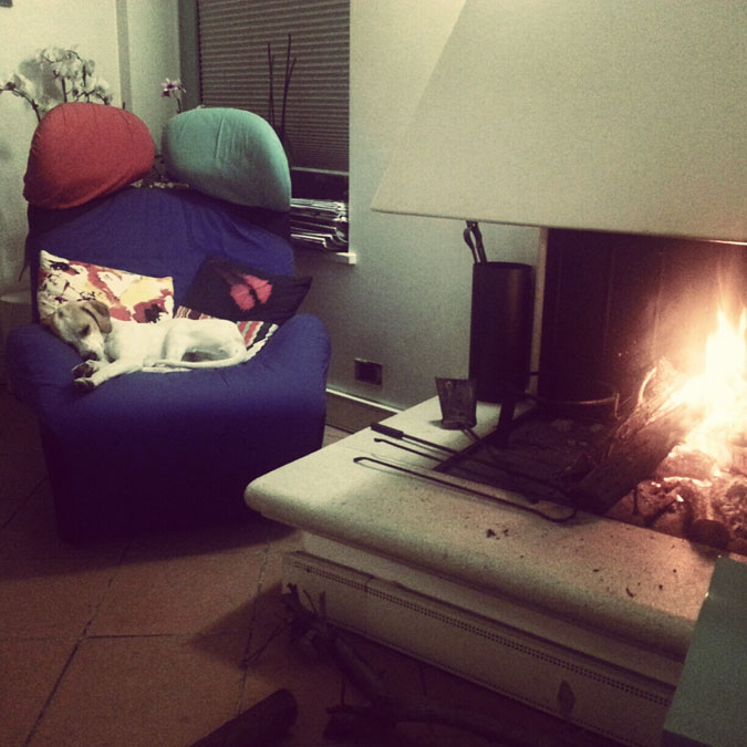 Here is our cat Lady Mousquet lounging on the kitchen table I got for free at my mom’s office… and Tesla, a labrador we are fostering for the Mira foundation, who always feels he should be involved in any picture-taking!