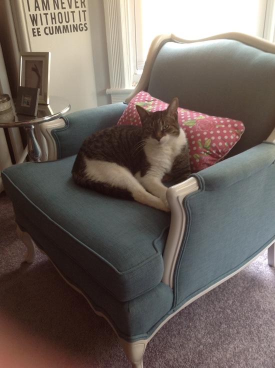 If you’d like to send me photos to include in next week’s “pets on furniture” post, please ensure your photos follow my basic rules: First, the pet must be on a piece of furniture. And said piece of furniture must be clearly visible in the photo, so it takes center stage rather than your pet. Think of it more of a photo of a great piece of furniture that you want to show off…and your pet happens to be sitting on it. And second, if the photo is too dark or unfocused then it may not make the cut. Photos, your name, location and a brief description can be sent to desiretoinspirekim@hotmail.comand PLEASE don’t send closeups of your pet! Thanks!