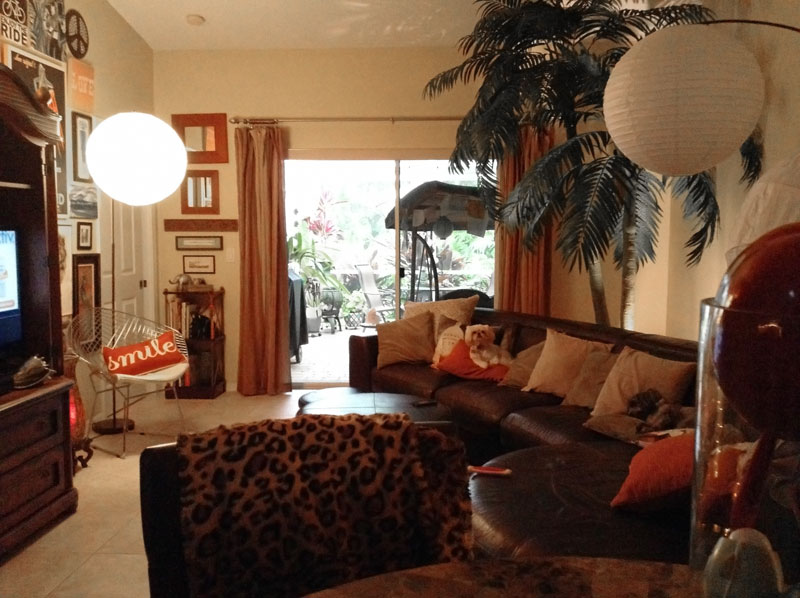 This photo is of our lounge room with sweet LuLu the rescue pup on the sofa. 🙂 Just noticed that our other rescue pup, Max is on the sofa too. Can you find him?
