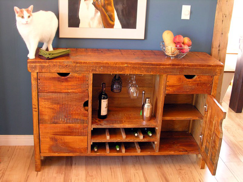 Our 4-year old pigeon-toed rescue, Geiger, loves to interfere with our mini photo-shoots and fully ‘inspect’ our new creations. Our home-based business makes rustic furniture like this maple syrup-colored salvaged red pine cupboard, which is pictured here, ready for delivery. He