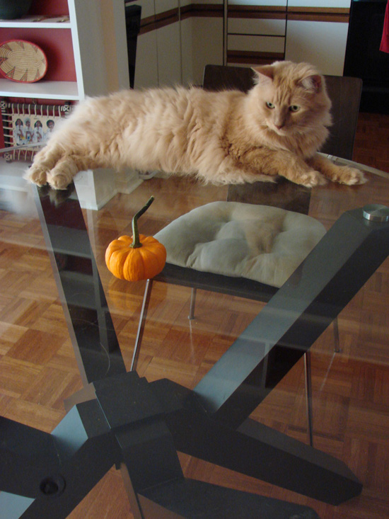 My favorites this week are Mr Banks warily eyeing the pumpkin invading his space and Jersey – Oh My! You found just the right spot!