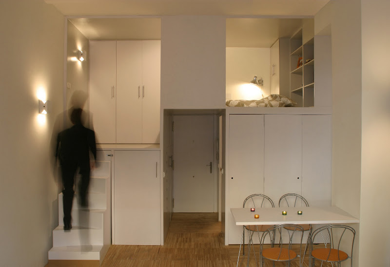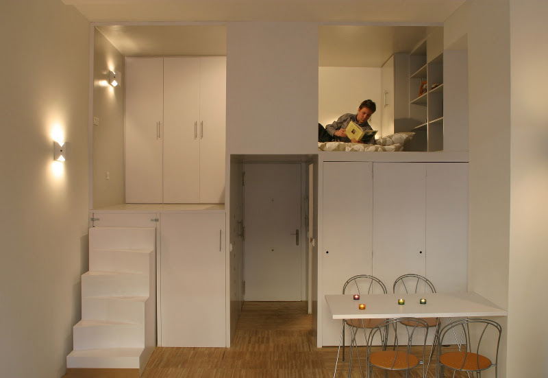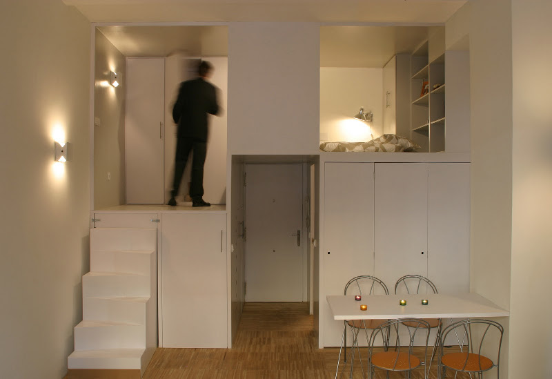 Could you live in 28 square metre apartment? I don’t think I could. Where would I put all my stuff? I’m such a hoarder. But I’m always fascinated by clever spatial solutions to living small. A puzzle box of an apartment in Madrid, Spain by Beriot Bernardini Arquitectos.