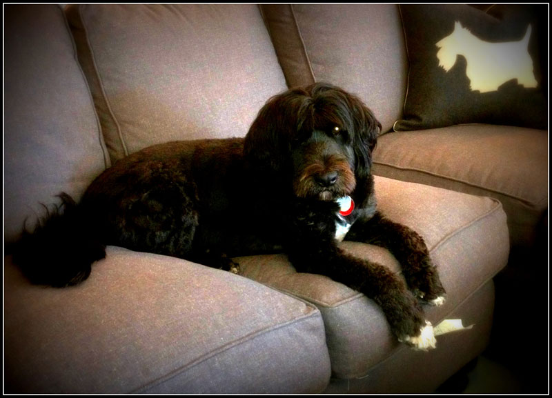 This doesn’t qualify for Monday’s PoF, because A) No furniture and B) Not my pets, but had to send this for your enjoyment anyway. Best as I can trace it, the photo was once posted on orvis.com in a customer submissions contest (Orvis sells clothes for the outdoors and pet beds.) It’s my favorite photo ever.