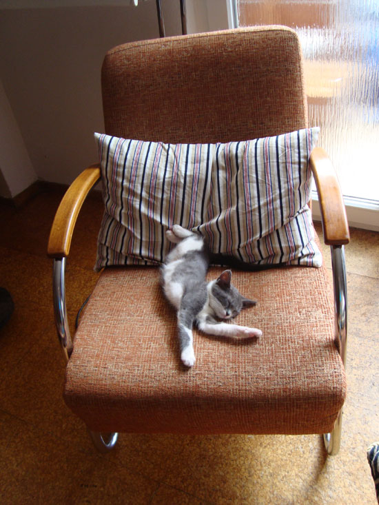 I’m sending you photo of our cat Mana. She’s enjoying classic 30’s armchair we inherited from great-grandma.