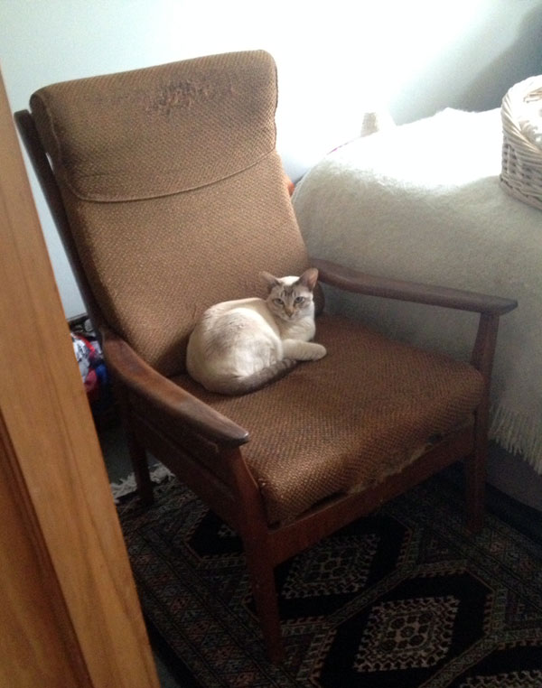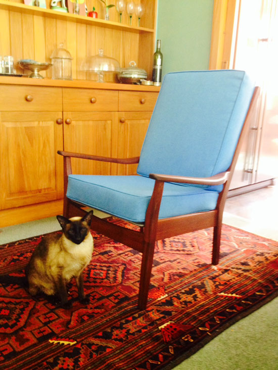 1960’s armchair DIY restoration. Before photo: with Khufu… After photo: with Farouk