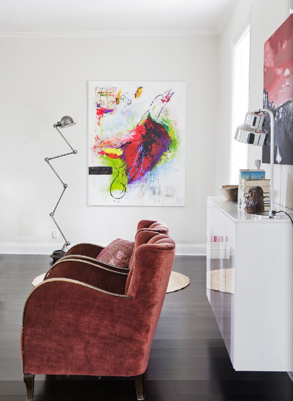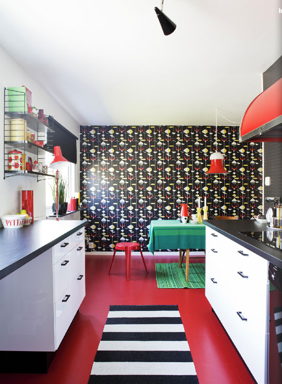 All so lovely to look at and live within. I'll never tire of Scandi style, mostly white spaces. But the kitchen with red and black is an especially fresh approach.
