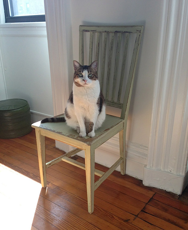 I was thrilled when I found this Buying & Design chair on the street in perfect condition. My cat, Tulip, was also thrilled, as it brings out the color of her eyes quite well.