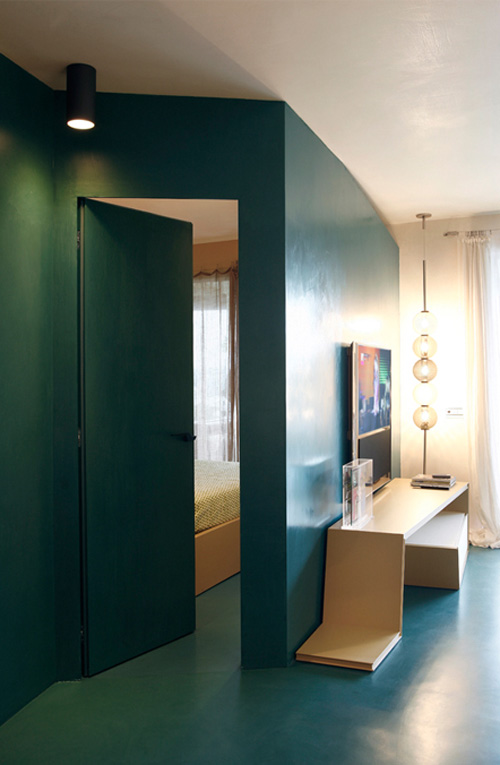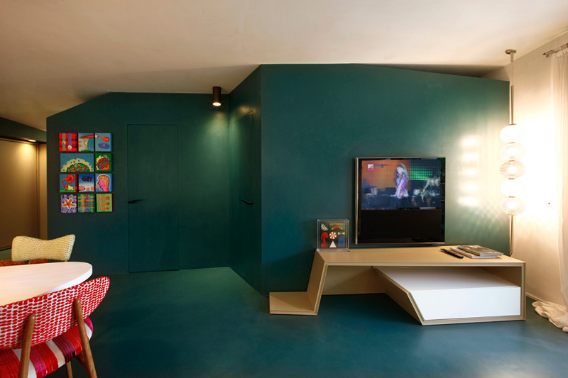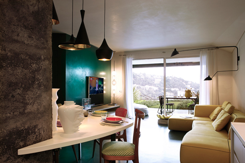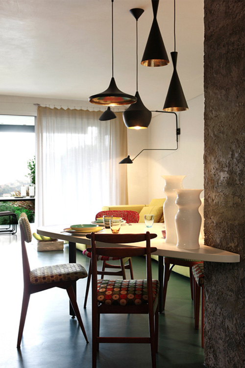 I found this fun apartment while doing some blog research and had to share. The 65m2 space is located in Villefranche-sur-Mer, France and is the creation of Turin, Italy based architecture firm MG2 Architetture. It’s a funky blend of modern and mid-century, bold and sassy colour and some of my all-time favourite lighting.