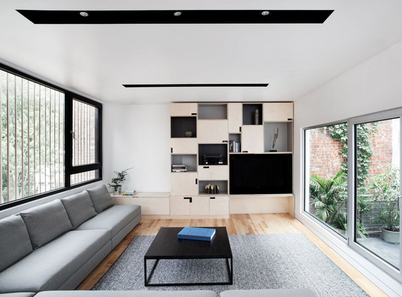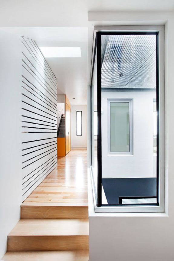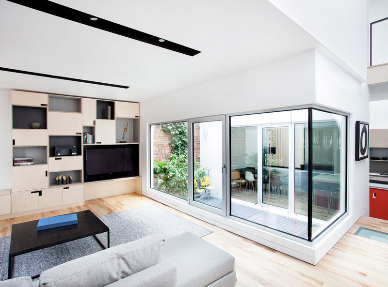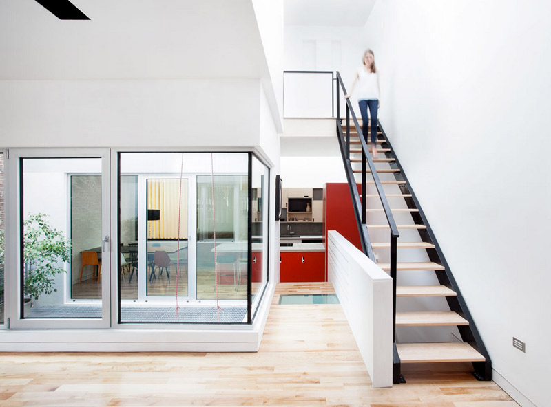 I LOVE this home designed by Montréal architects _naturehumaine. I read the description to my husband while chuckling – it’s exactly what we wanted to do when we tear down our house and rebuild. This project was done in collaboration with the client who wished to build his own home. The site is located in a back alley of Montréal’s Plateau neighbourhood and the design reflects the patchwork of extensions and renovations typically found in Plateau alleyways. The constraints of the site called for a house that was built upwards versus outwards. Four boxes clad in different materials are stacked one on top of the other. A void carved out of the center of the house, provides daylight, ventilation, and private outdoor space. (Check out another of their projects here).