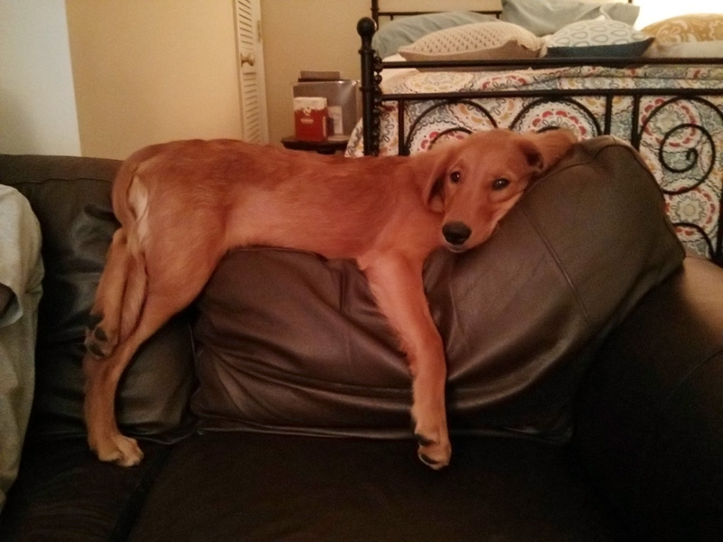 I had to share this photo of Frannie the West Highland Terrier sound asleep on our sofa during our holiday party last year. She actually belongs to my in-laws, but comes to visit often and always makes herself right at home!