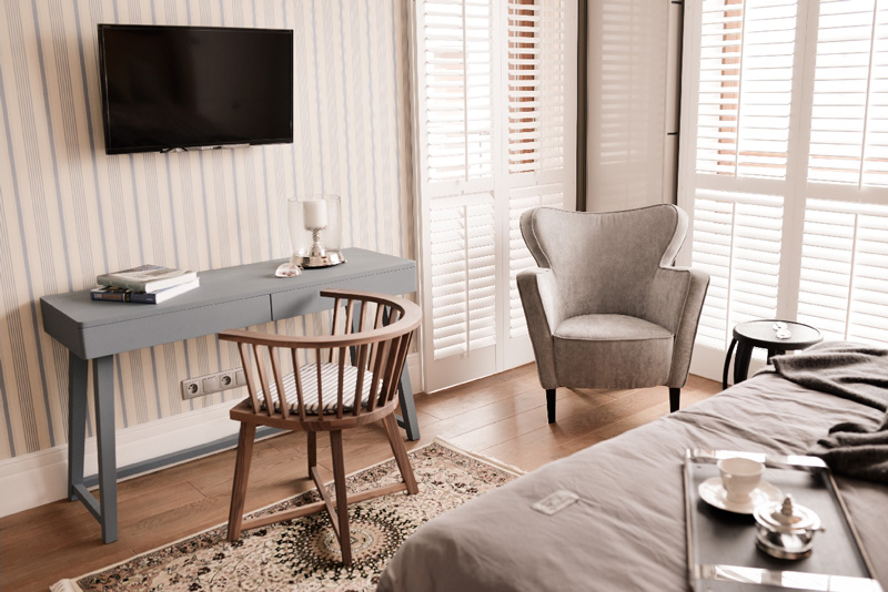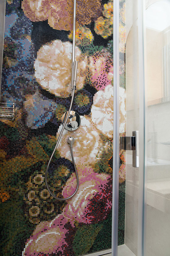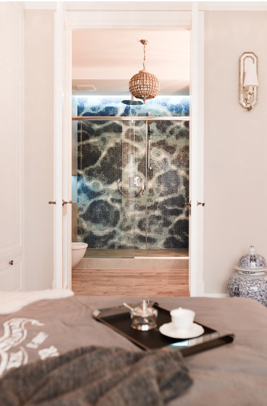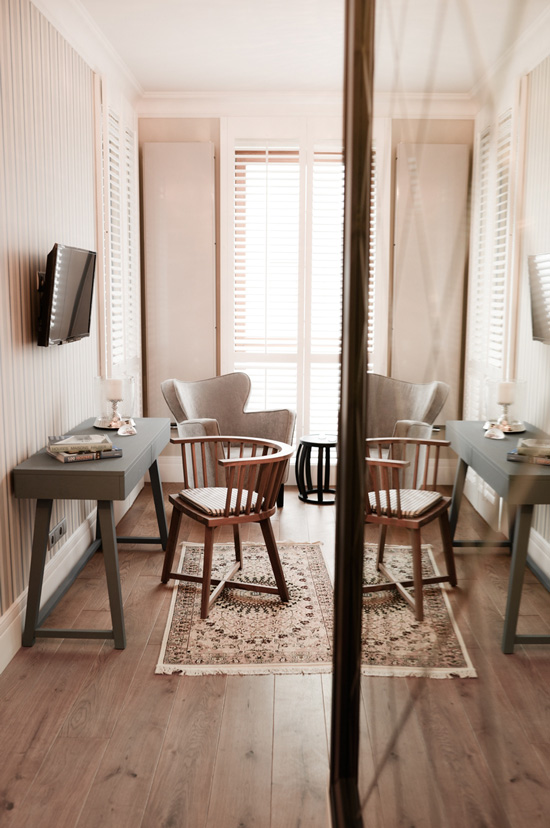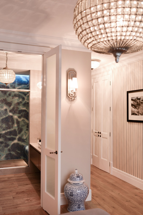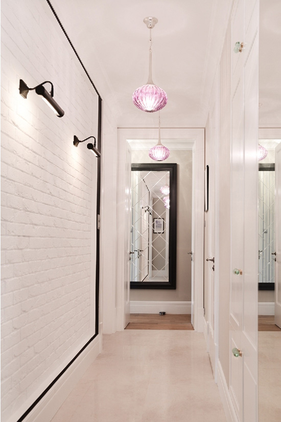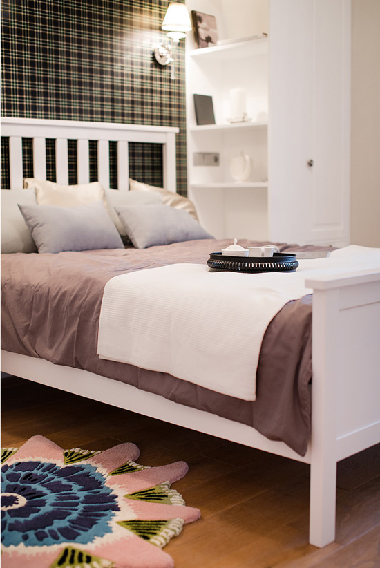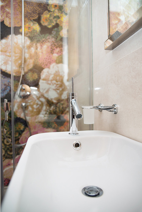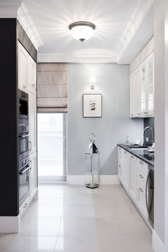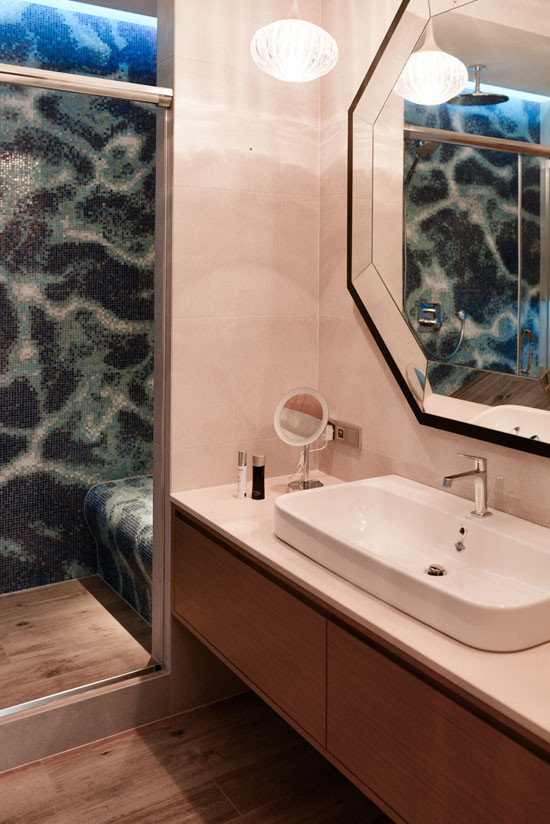 Polish interior designer Lucyna Kołodziejska is at it again, and this time it’s her take on a luxury seaside hotel in apartment form. The space is over 100 metres, comprised of 3 bedrooms, 2 bathrooms, kitchen and living room. Her client uses the space only on weekend or few days in summer. It’s on the top floor so there is a view of the sea from the private terrace on the roof. (!!!) Her client wanted to have some seaside elements inside too so she designed the mosaics in the master bathroom and chose the wallpaper and shutters to play off the seaside cottage vibe. Lovely!