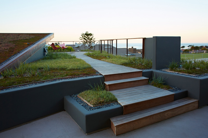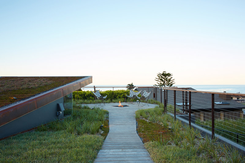 Spring is finally here and I’m super excited to see green stuff outdoors! Seeing so much dirt and snow and dormant vegetation gets seriously depressing by the end of winter. An email from Jeffrey of Jeffrey Gordon Smith Landscape Architecture could not have come at a better time. I blogged his gorgeous outdoor spaces here and here, and this time he wanted to share his latest project in Shell Beach, California. It’s a one-bedroom guest house with a LiveRoof and it’s a DREAM. Who cares what the interior looks like when you have this outside? I’d be living outside. Just pitch me a tent somewhere…or I’ll claim one of the hammocks. (Photos by Chris Leschinsky)