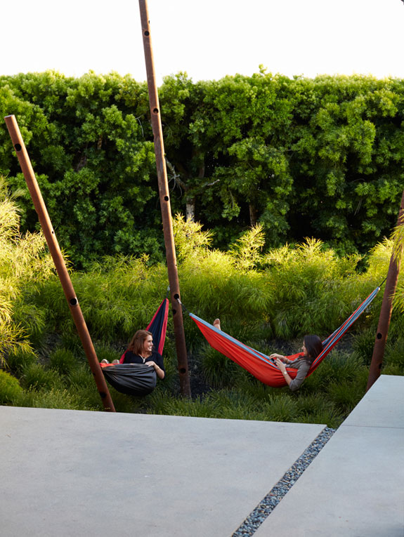 I could almost tell that this was in California even before reading the article just because of how beautifully everything was done! too would take a hammock outside because look at how gorgeous it all is!