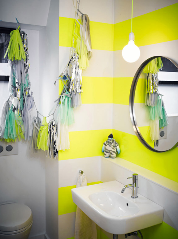 Douglas Friedman, photographer extraordinaire, is becoming a regular here at desire to inspire. His photos are brilliant, and the spaces spectacular. I’m completely inspired. I want a black and white kitchen like the one above. I want a whole set of Eames armchairs. I want a retro living room complete with odd rattan light fixture. I want a neon striped and tinsel adorned bathroom. I want a gold bed. I want to spray paint my hallway. I want….