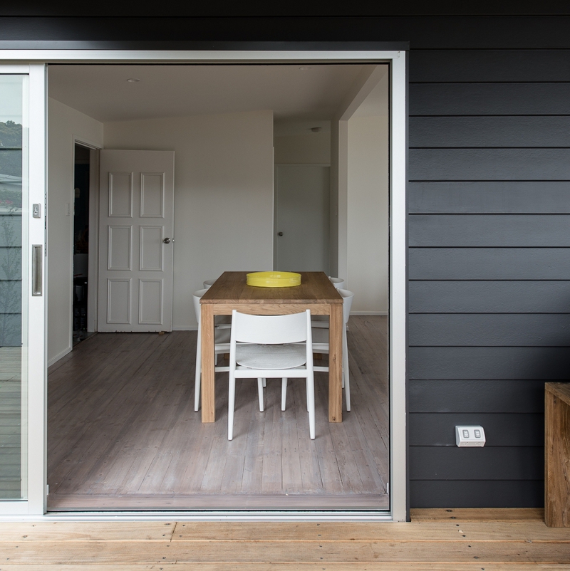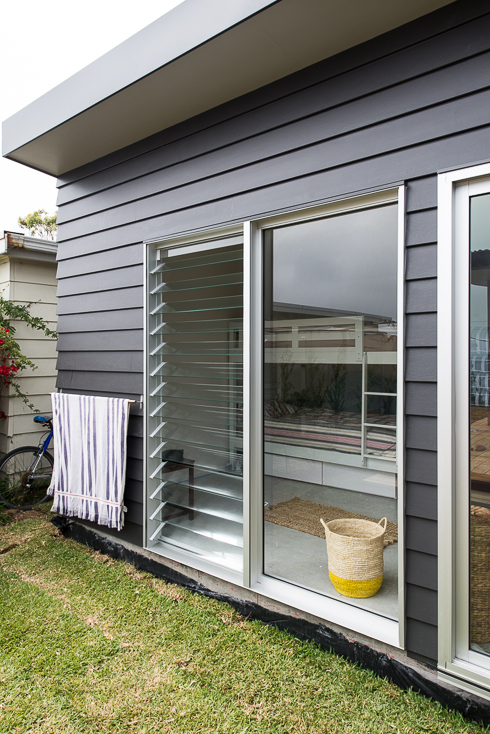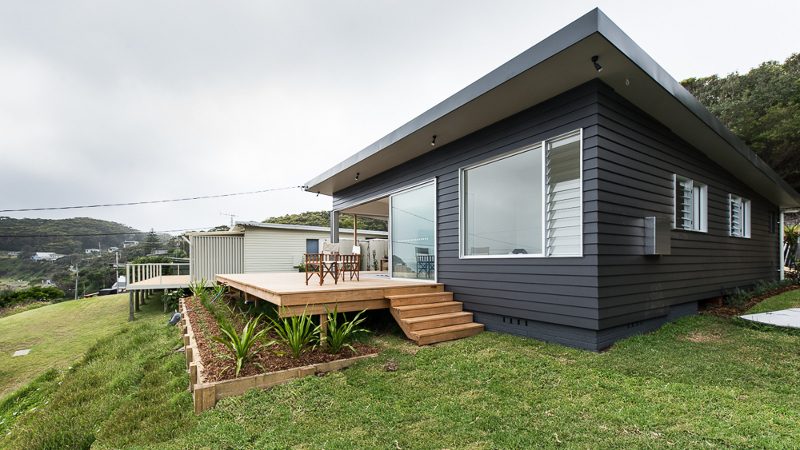Love Love the exterior colour of this bach.