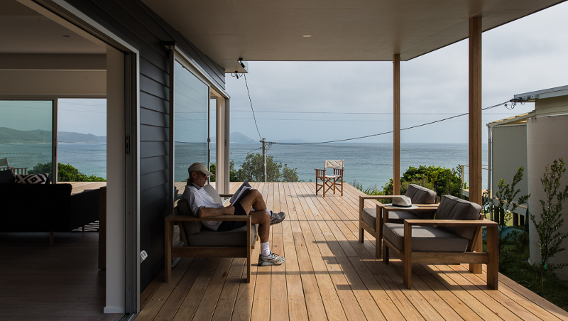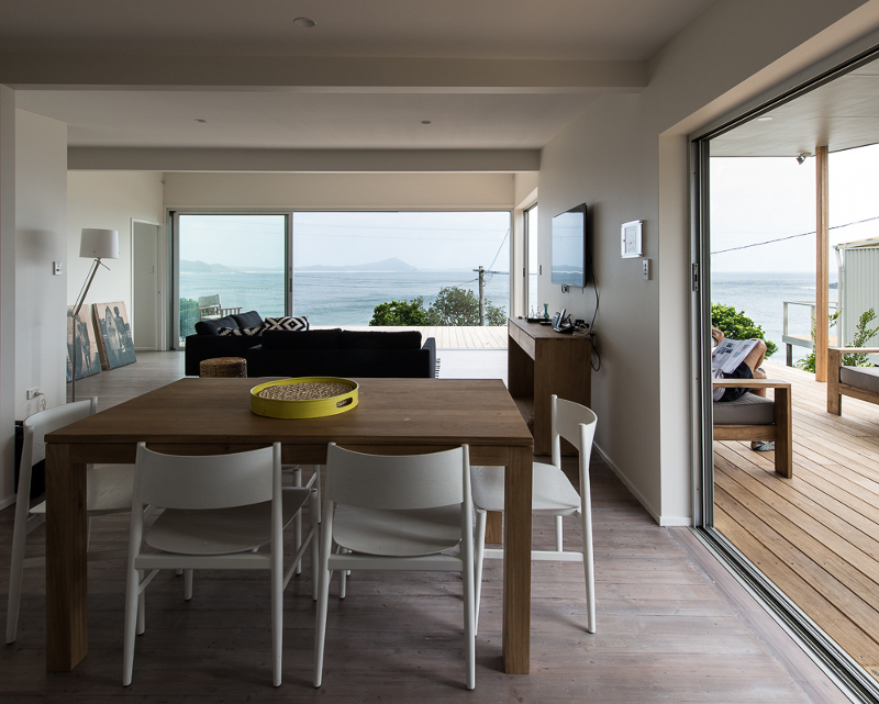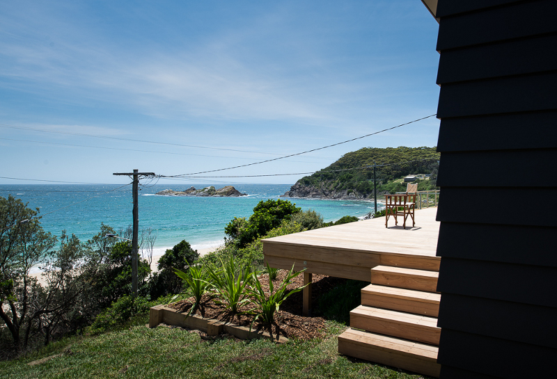 They cling stubbornly to sand dunes and hillsides along the Australian coast. Simple beach shacks slapped together in the 50s and 60s. Collective histories of family summer holidays, fishing, sand in bathing suits left strewn on railings after the obligatory post beach outdoor shower. A man’s castle but definitely no mansion. Passed from generation to generation. Rare. Endangered. Swallowed up by McMansions. Lost forever. Unless they are saved, renewed and once again cherished. Like this Seal Rocks shack brought back by Bourne Blue Architecture. Nothing precious but such a treasure.