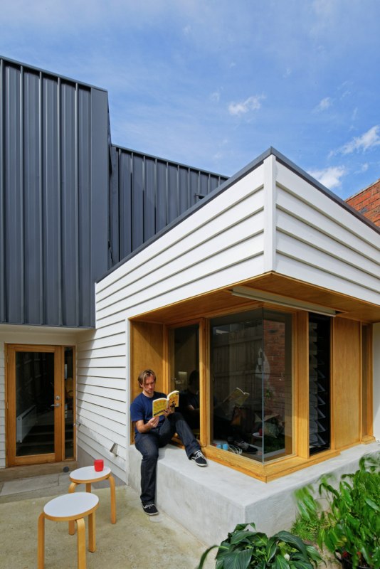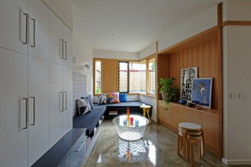 Small is often a necessity not a choice. This alteration/addition to a terrace house in inner city Carlton, Melbourne by architectural firm 4site was constrained by the narrow site. Compact and clever the new addition contains bathroom, laundry, living, dining, kitchen, master bedroom and ensuite all with those most valuable of design solutions in a tight space… storage and light.