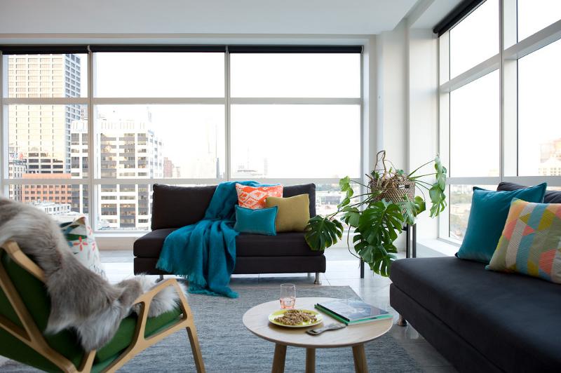 Older apartments have a lot going for them. They are often bigger and, dare I say, better built but what you gain in extra square metres and solid walls is counterbalanced by tired old decorating schemes and years of use and abuse. Tart the old dears up and that’s a different story. The scope of work in this William St, Melbourne apartment included renovating the bathroom and kitchen and the addition of an entertainment unit in the living area. Shiny, bright and new. The perfect inner city pad by Katherine Wills Design.
