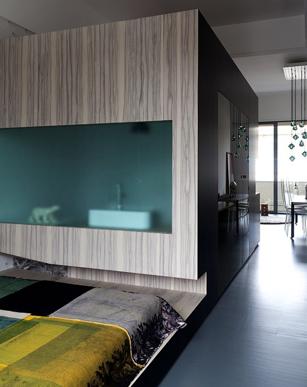 This 40m² apartment in Turin, Italy was once an industrial space now converted into a hip, modern dwelling by the folks at UdA. I’m always a fan of their projects as they are so creative, aren’t afraid to add bits of colour and pattern, and they blend different materilas in very unusual ways. I also love their use of varying angles. Turns a boring rectangle into something far more interesting. (Previous posts of their work here, here and here).