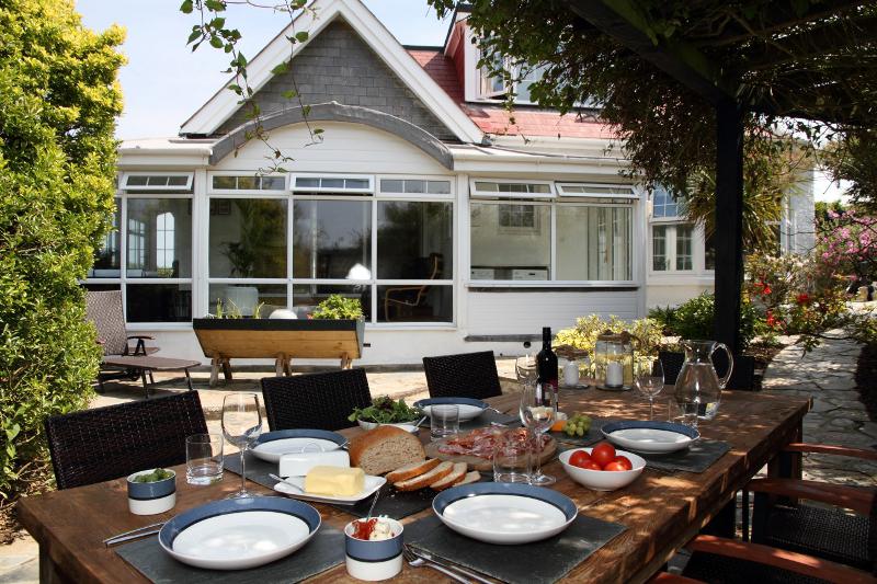Imagine living on an island (when the tide is in) in a 1930’s house with its own suspension bridge. Imagine spectacular views along the Cornish coast. Imagine a stylish home of understated luxury with a muted colour palette of charcoal greys and neutrals. The ultimate in beach houses? You don’t need to imagine staying there. It’s a luxury holiday rental. The House in the Sea, Newquay, Cornwall via Unique Home Stays