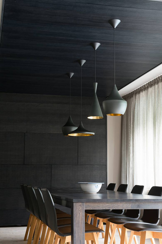 Planted firmly in the hillside and blurring the boundaries between inside and out the house sits on a country road on the way to the Snells Beach in the North Island of New Zealand. Referencing farm shed and beach the building steps down over the site with walls that open to spectacular vistas of field and sea. Stylish and casual but with a simple elegance. Brick Bay House by Glamuzina Paterson Architects.