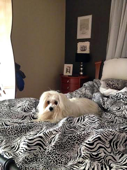 This is my 11 year old Silky. You may find her on the kitchen bench or relaxing in the armchair in the living room or sleeping in our bed.