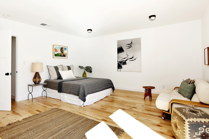 Hunter Kenihan of design/build firm Indian Summer Investments is at it again with another spectacular renovation. Located near Marina Del Rey, California, this 1950’s 3 bedroom, 2 bath + den home was completely updated with Hunter’s trademark industrial touches that I love – including reclaimed wood inside and out. Some wicker, southwestern patterns and warm colour palette like in the previous home we featured make this a winning combination for an easy sell. Even if you aren’t into the decor, take notes folks, as once again this is how you stage and photograph a home on the market.