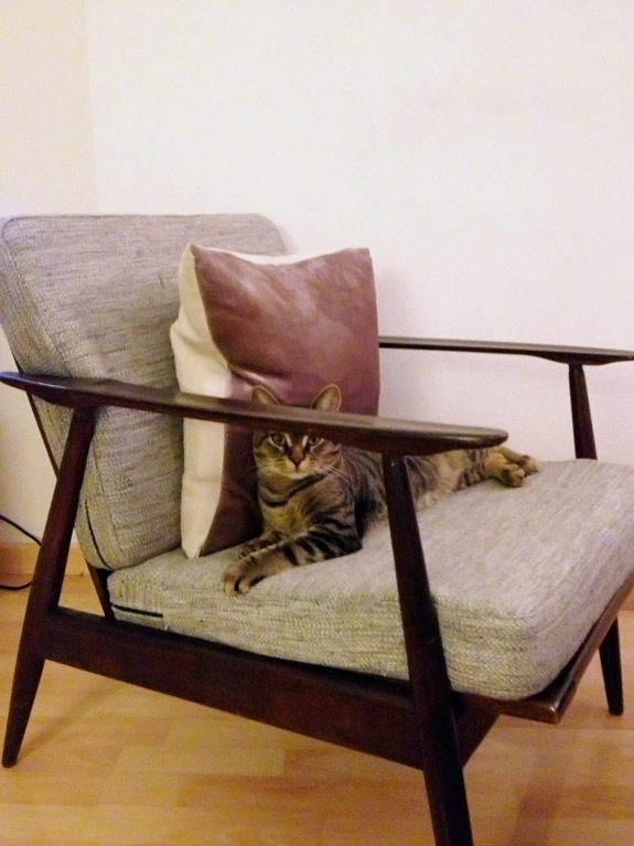 If you’d like to send me photos to include in next week’s “pets on furniture” post, please ensure your photos follow my basic rules: First, the pet must be on a piece of furniture. And said piece of furniture must be clearly visible in the photo, so it takes center stage rather than your pet. Think of it more of a photo of a great piece of furniture that you want to show off…and your pet happens to be sitting on it. And second, if the photo is too dark or unfocused then it may not make the cut. Photos, your name, location and a brief description can be sent to desiretoinspirekim[at]hotmail[dot]com and PLEASE don’t send closeups of your pet! Thanks!
