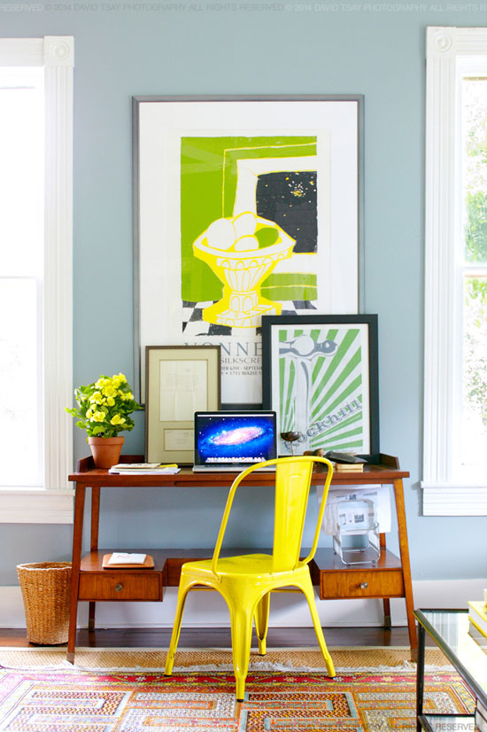 My favorite shots have something quirky in them: eye glasses on the sink, a syrup bottle as a soap dispenser, yellow chair pulled up to a piano. They all say: Life! People live here! Thanks for sharing…an inspiration truly.