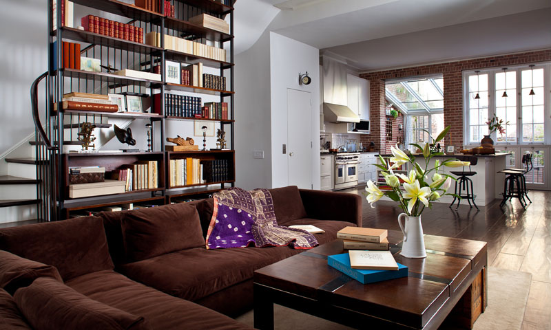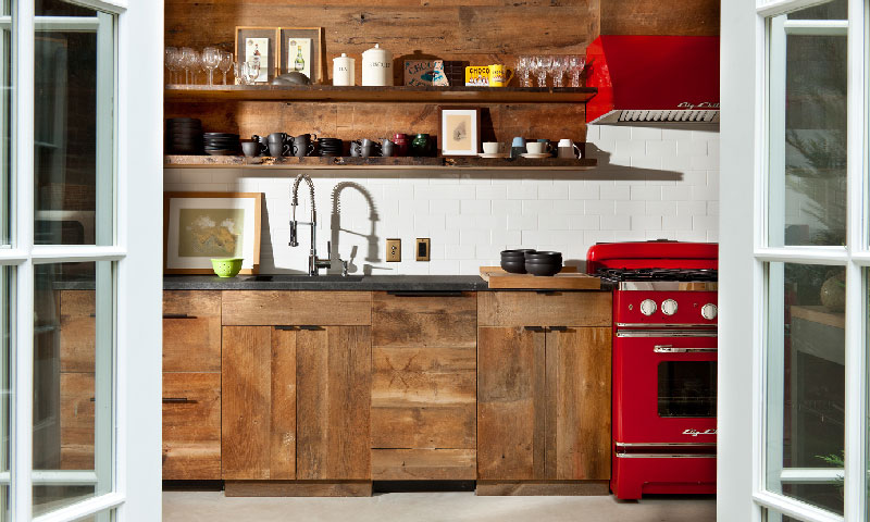 I'm going with the Wow! thing. Seriously bored with the great room thing; it's become an exercise in soulless go-to. But the decisions here put the soul back in. The colors, textures, warm lighting, mix of styles — and can we talk about those wild double-tall open drawers? I can't believe that works! The uber-civilized library table and old-euro chairs shouldn't work with the bleached, upcycled wood, but does. Then you have the fairytale-conceived kitchen/sunroom — /swoon!/ (Someone do something with that white lump of door-wall, that's very visually annoying, in such a delicate setting.) My absolute favorite, however, is the little side hall kitchen with the red stove. That is every little girl's play kitchen come to life.