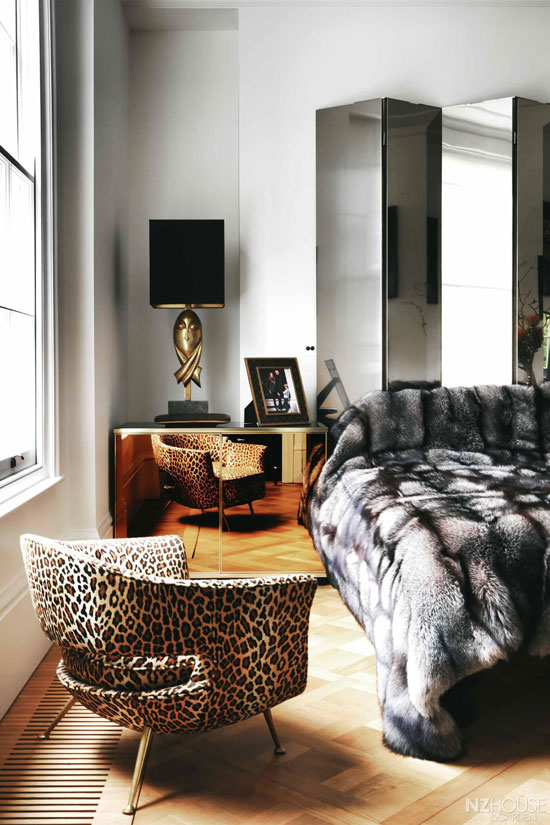 There are several decor styles that really do it for me, and every so often a glamourous home knocks my socks off. This is one of those occasions. This Georgian home in Notting Hill Gate, London is HOT!!! It belongs to architectural and interior designer Colin Radcliffe and his model wife Angela Dunn. My favourite room is the bedroom with mirror, fur and leopard. There’s nothing sexier than that combo! (Photos via Colin’s website and NZ House & Garden)