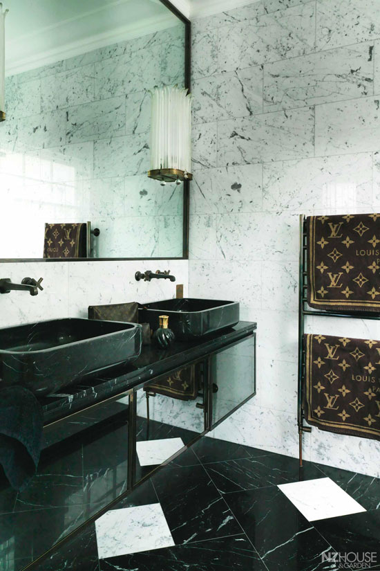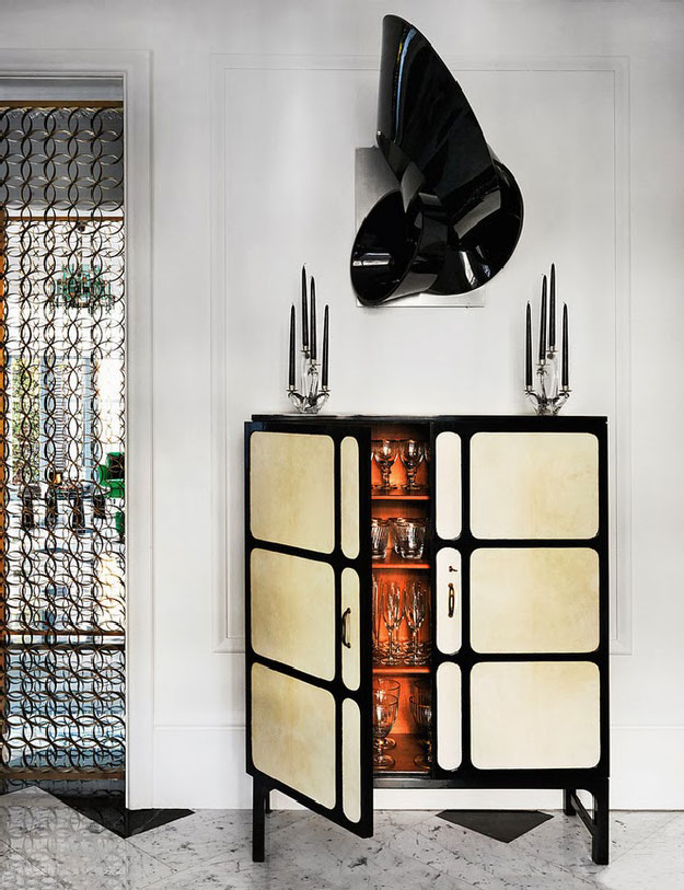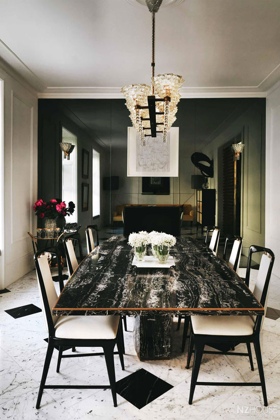 I think, if the bedroom was the only room that received this treatment, that would be a treat. A private space to wallow in, to indulge a sly sense of decadence. Perhaps keep a visual wink in one or two of the public rooms — the b&w crystal cabinet is adorable. But to splash it about into every corner of every room? Pretentious, is more the word I'd put to it. Hyacinth Bucket territory.
