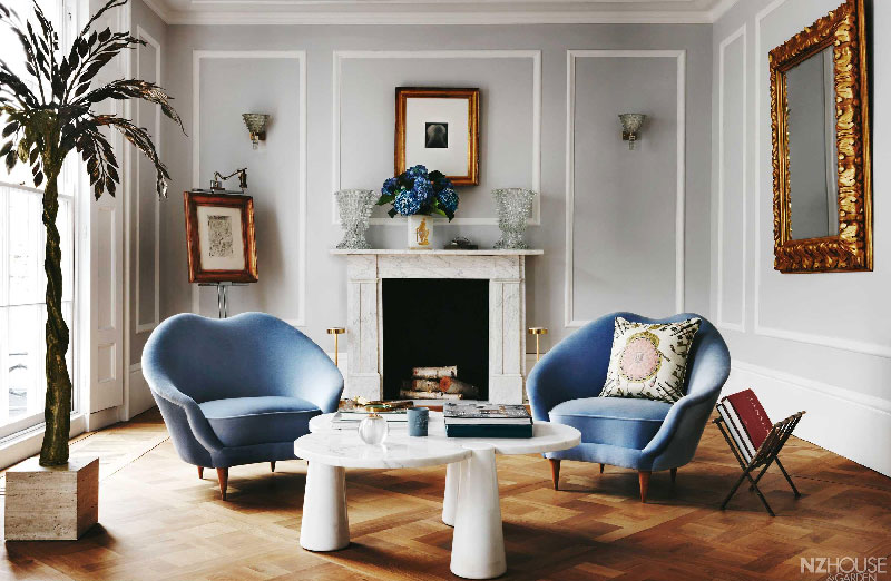I love the first pic – the 2 blue chairs add character to the space and the amazing ornate gold mirror just completes the scene, its an amazing focal point. Modern homes can sometimes feel a little cold with strong lines and furniture with little detailing, but adding gold to the rooms really adds warmth and brings a look together. I love the outside colour of the home too – envy of the street.