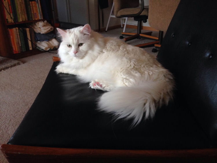 1 – My boy Myshkin loves to lie on top of this armchair and act as a neck cushion for my husband