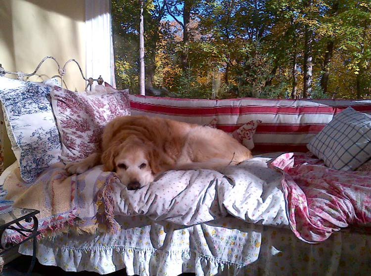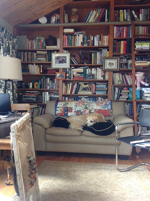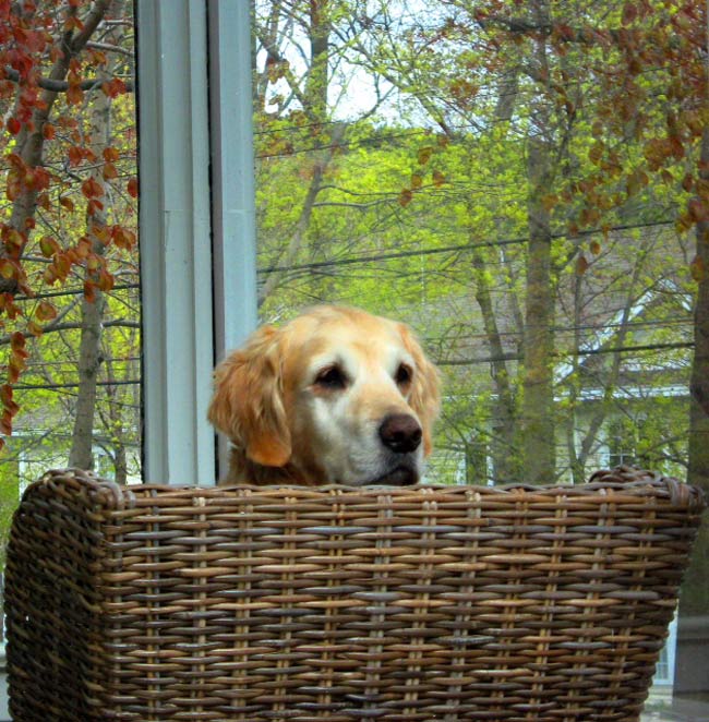 Here are three shots of our beloved Kodi, who passed last year, enjoying some of his favourite perches in our home, Caribou Hill.